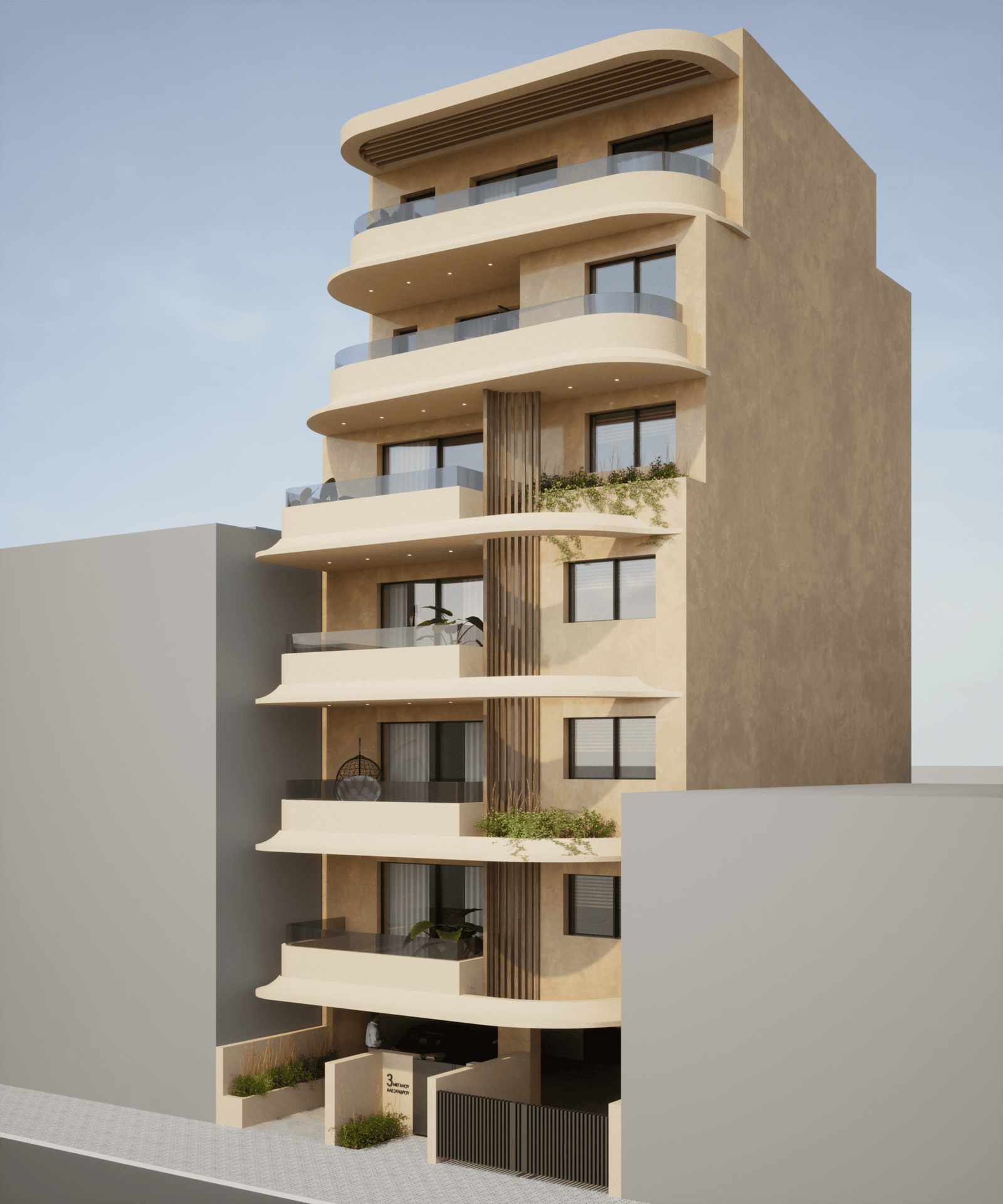 Το νέο οικιστικό έργο στον Κορυδαλλό αποτελεί μια σύγχρονη πρόταση αστικής κατοίκησης που ξεχωρίζει για τον κομψό σχεδιασμό, τις ήπιες καμπύλες και τη διαχρονική αισθητική του. Πρόκειται για μια πενταώροφη οικοδομή με πυλωτή και σοφίτα, σχεδιασμένη ώστε να προσφέρει άνεση, ιδιωτικότητα και υψηλή ποιότητα διαβίωσης στο σύγχρονο αστικό περιβάλλον.