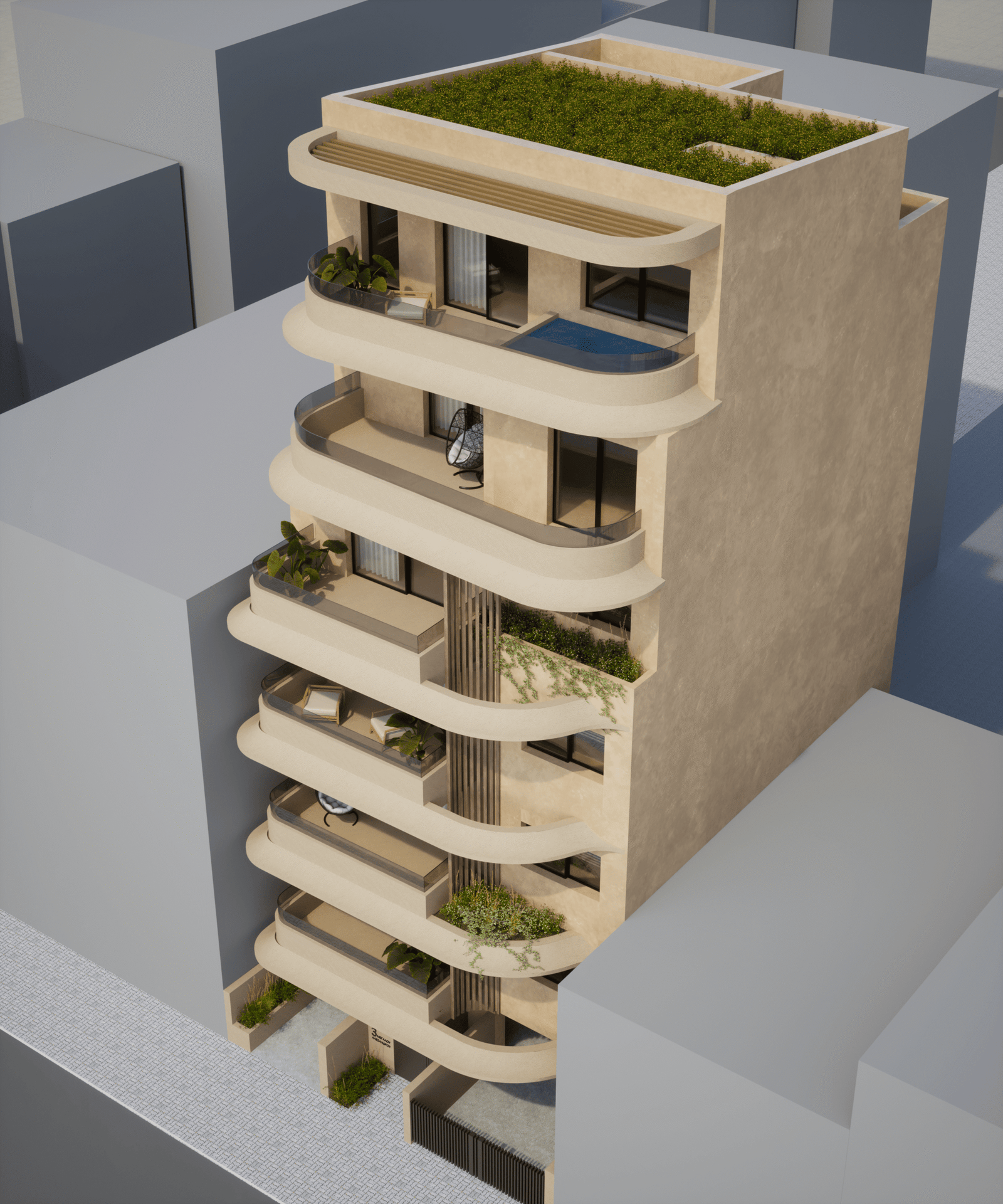 Η παρουσία του πρασίνου εντάσσεται επιλεκτικά στον σχεδιασμό, λειτουργώντας ως στοιχείο ισορροπίας μέσα στο αστικό τοπίο και ενισχύοντας τη συνολική αισθητική του κτιρίου. Το έργο αποτελεί ιδανική επιλογή τόσο για ιδιοκατοίκηση όσο και για επένδυση, προσφέροντας σύγχρονες κατοικίες υψηλής ποιότητας σε μια αναπτυσσόμενη περιοχή, με άμεση πρόσβαση σε μέσα μεταφοράς, βασικές υποδομές και το κέντρο της πόλης.